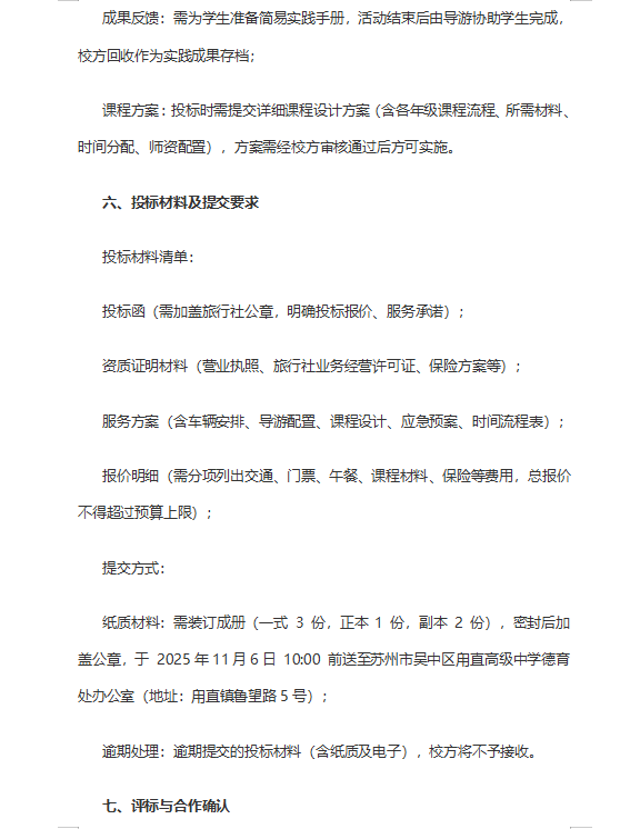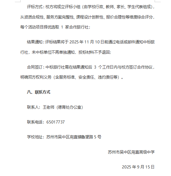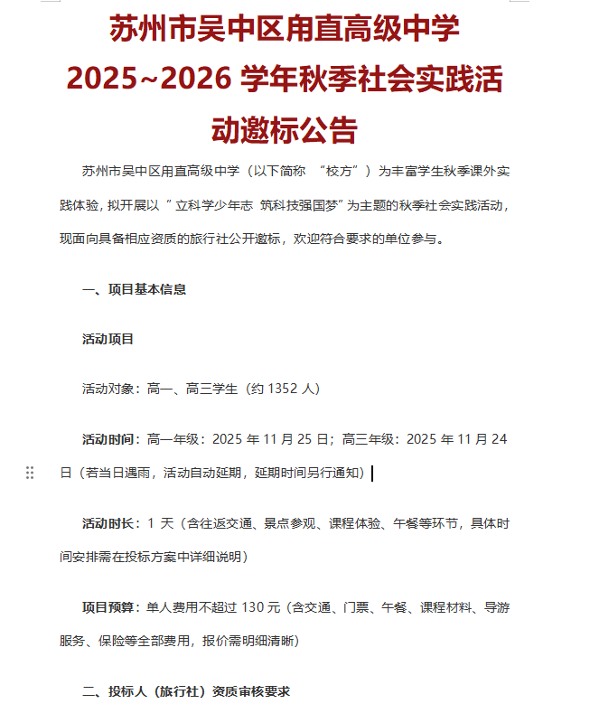 2025年吴中区甪直高级中学社会实践活动邀标公告